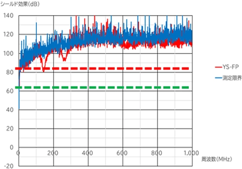 当社ではKEC法で測定できる100kHz~6GHzの範囲で高いシールド効果を確認いたしました。