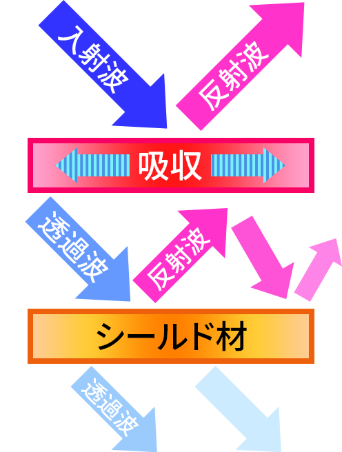 この反射波を再びシールド材で反射させ材料内で反射を繰り返すことによりシールド性能を高める。